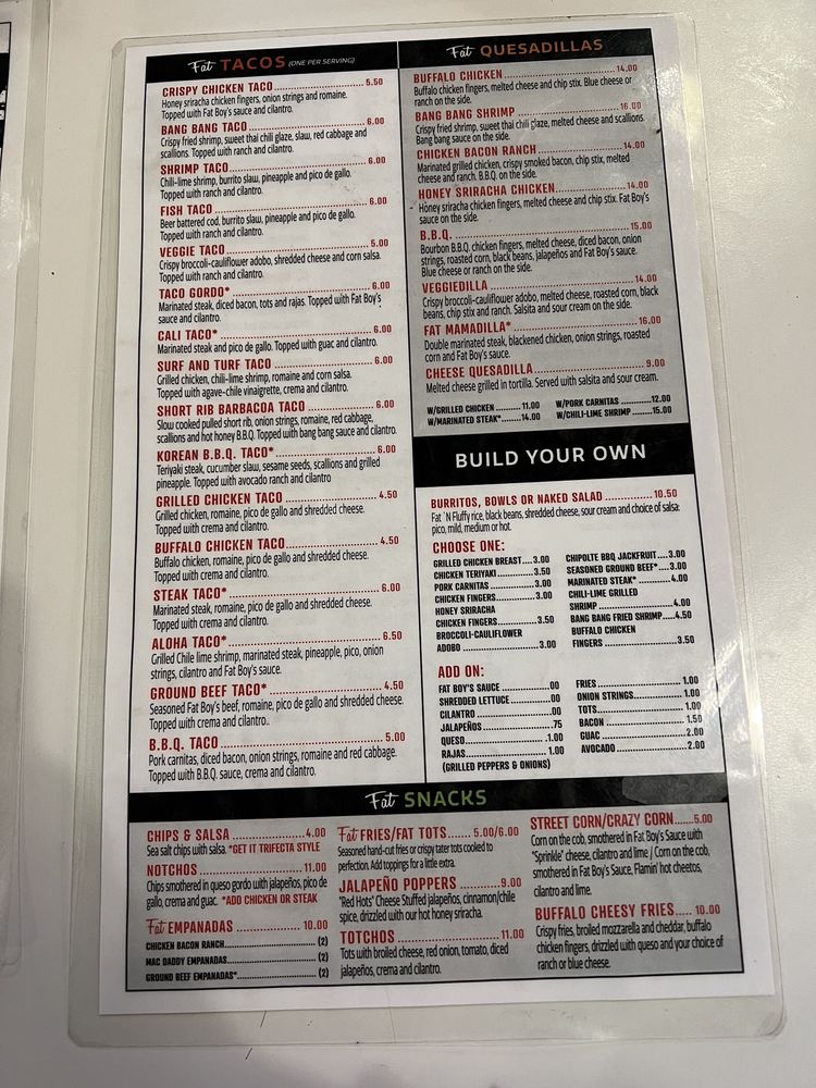 Introducing Fat Boys Burrito, a trendy and casual spot in Bellmore, NY offering delivery, takeout, and a variety of options for pescatarians, vegans, and vegetarians. The menu features unique snacks like NotChos Chips and Fat Fries, as well as satisfying salads like the Taco Salad and West Coast Avocado Salad. Customers rave about the inventive Chicken and Waffle Quesadilla and the delicious Mac & Cheese-filled empanadas. The service is welcoming and attentive, creating a laidback and comfortable atmosphere. With friendly staff and a wide selection of menu items, Fat Boys Burrito is a must-visit spot for those looking for a filling and flavorful meal. Don't miss out on trying their refreshing drinks and oversized burritos, perfect for a satisfying dining experience.